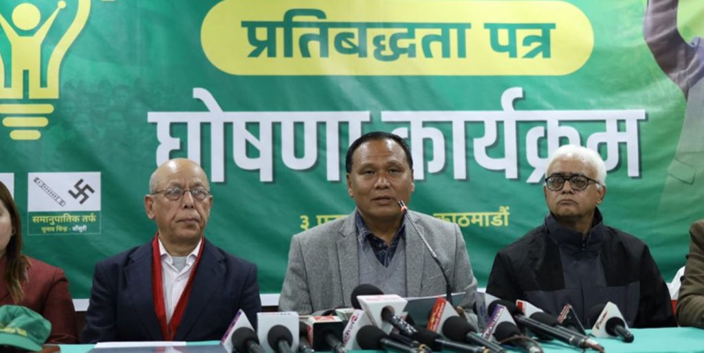 आइतबार काठमाडौँमा पत्रकार सम्मेलन गरी उनेपाका अध्यक्ष कुलमान घिसिङले चुनावी प्रतिबद्धतापत्र सार्वजनिक गरेका छन्। उनेपाले चुनावी घोषणापत्रलाई प्रतिबद्धतापत्र भनेको छ।